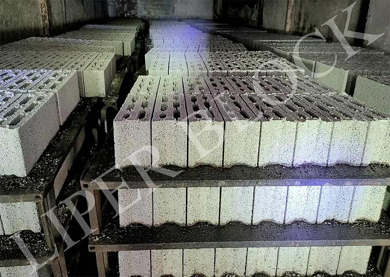 انواع بلوک سبک لیپر برروی پالت های فلزی تولید شده، که پر کردن قالب همراه با چهار ویبره vertical و پرس چند ده تنی به صورت همزمان صورت می پذیرد. سپس بلوکهای سیمانی سبک تولید شده برروی پالت های فلزی، توسط ربات های جمع کن و لیفتراک به کیورینگ ها (سالن های بخار) منتقل شده و بعد از طی زمان مناسب در دما و رطوبت بالا;
